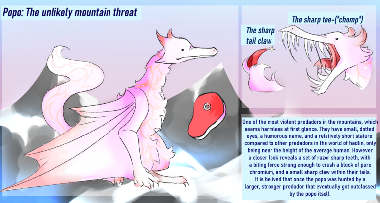 The many creatures from the fictional land of hadlin--starting with the mountain creatures.(other creature refs are farther underneath)